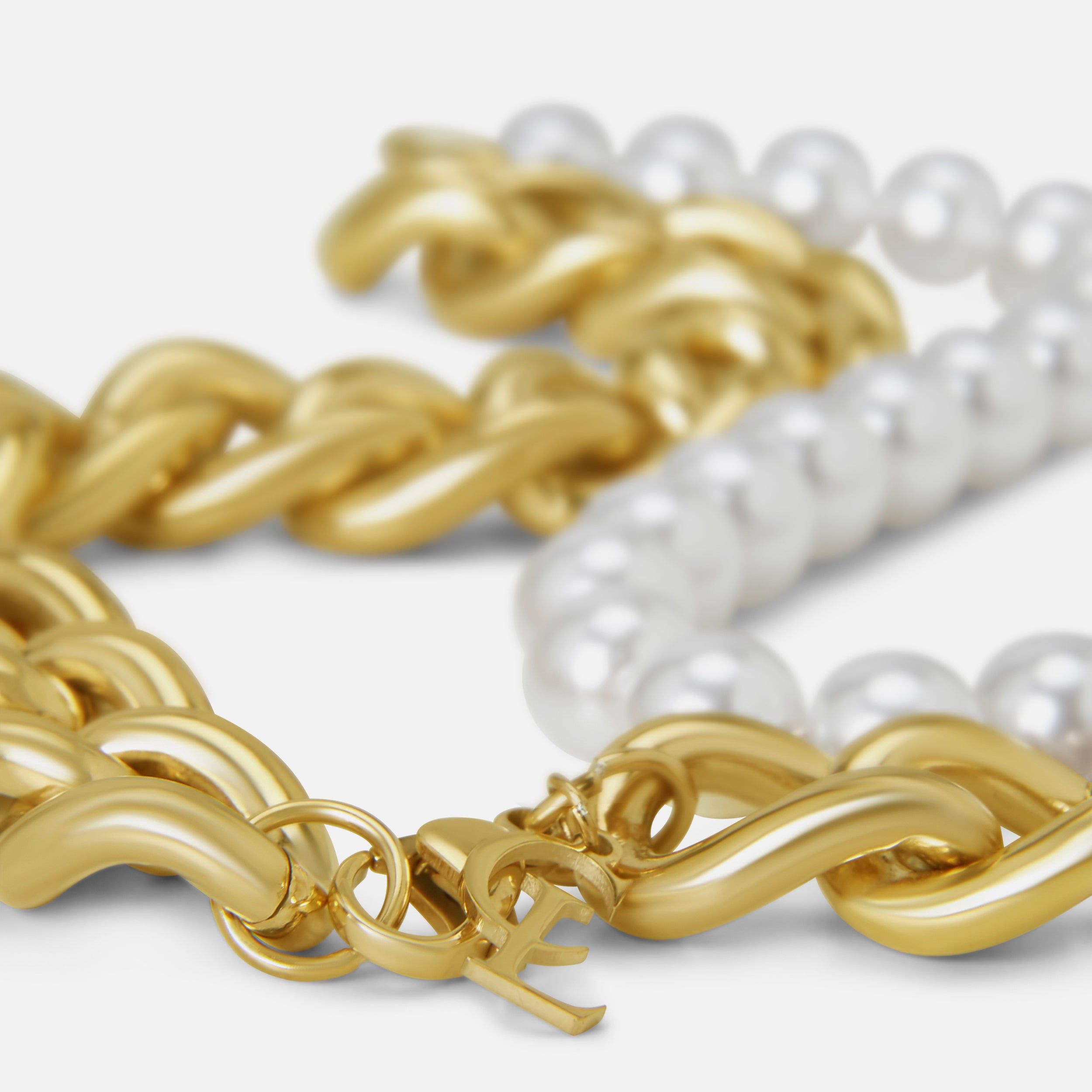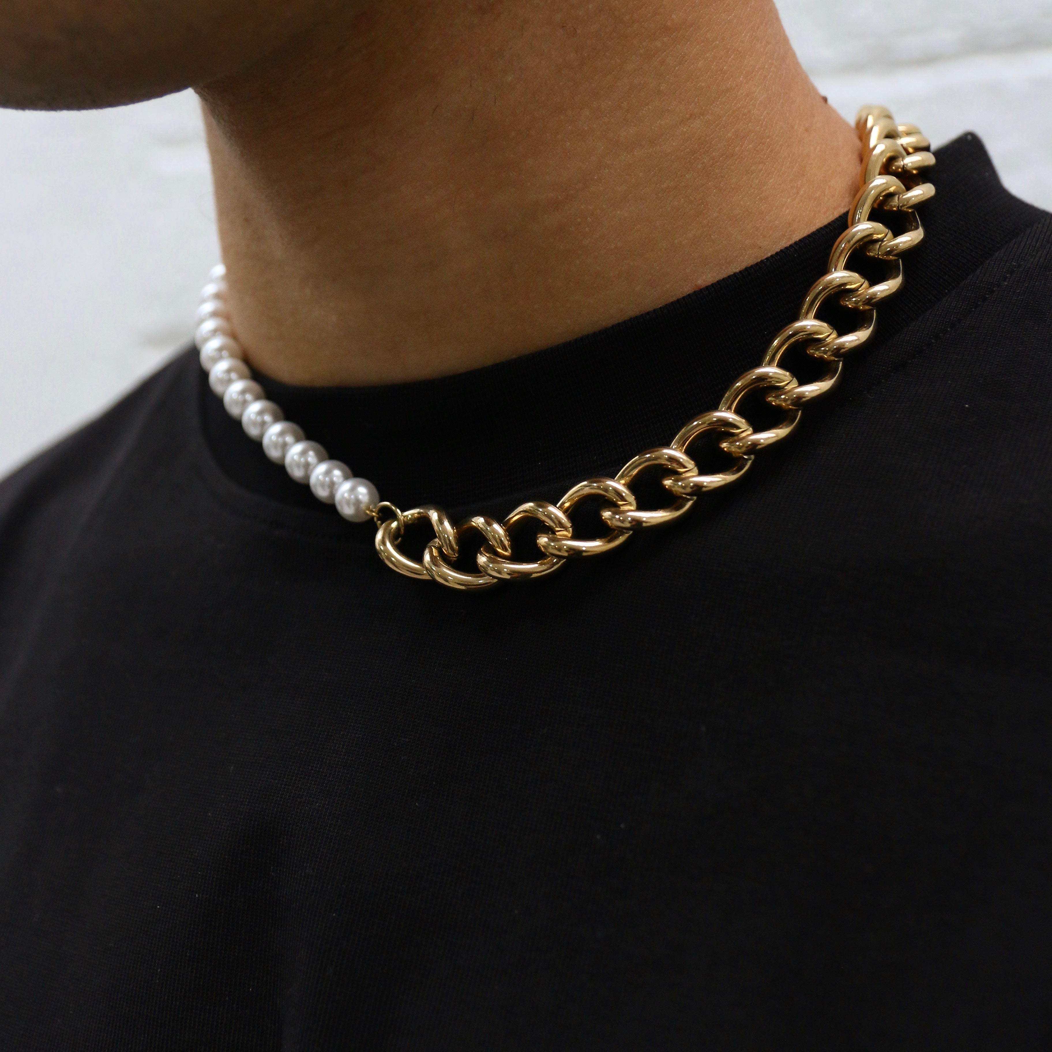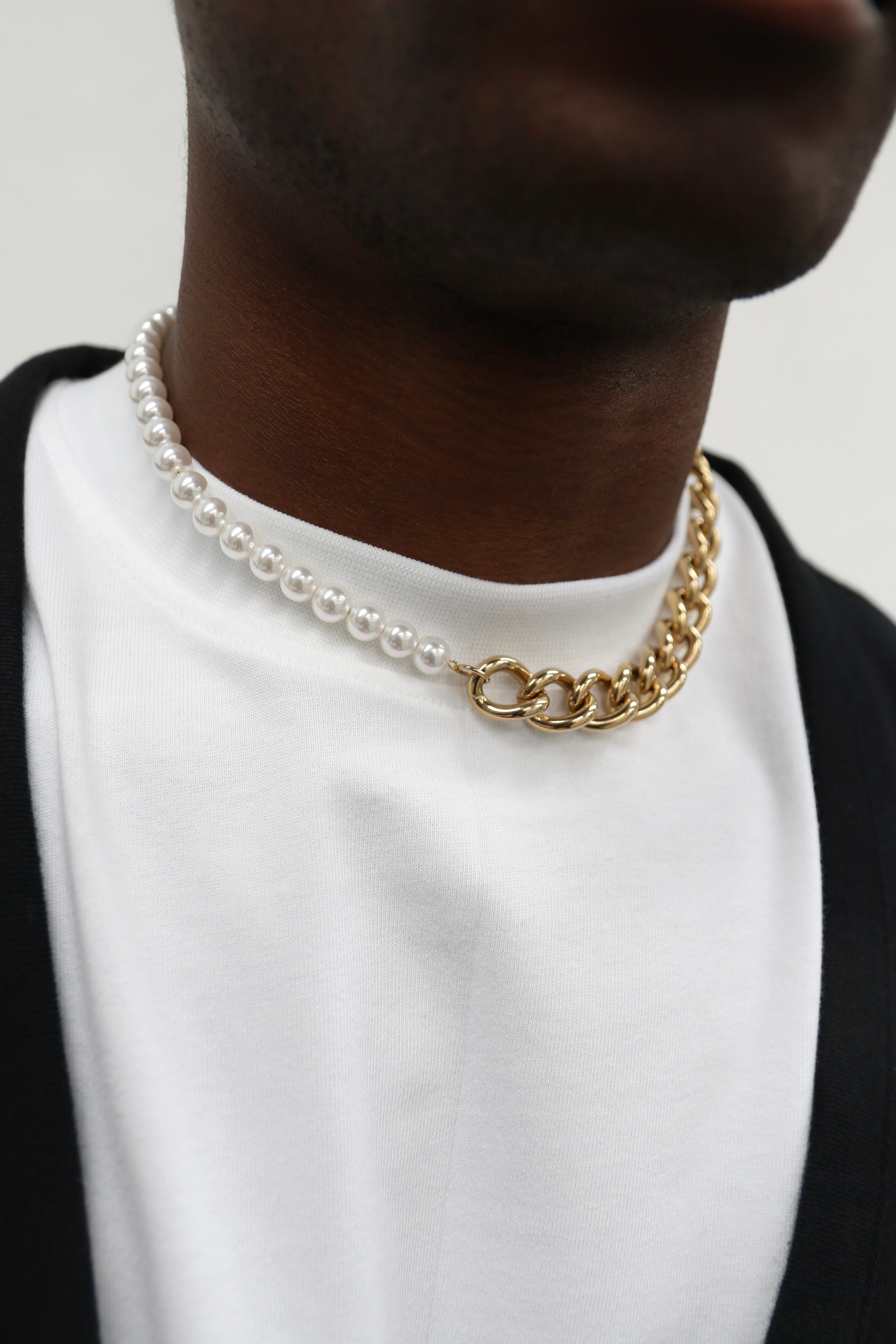 A unique design comprised of high quality XL rounded chain and a white pearl style chain. Get the best of both worlds with this standout piece.