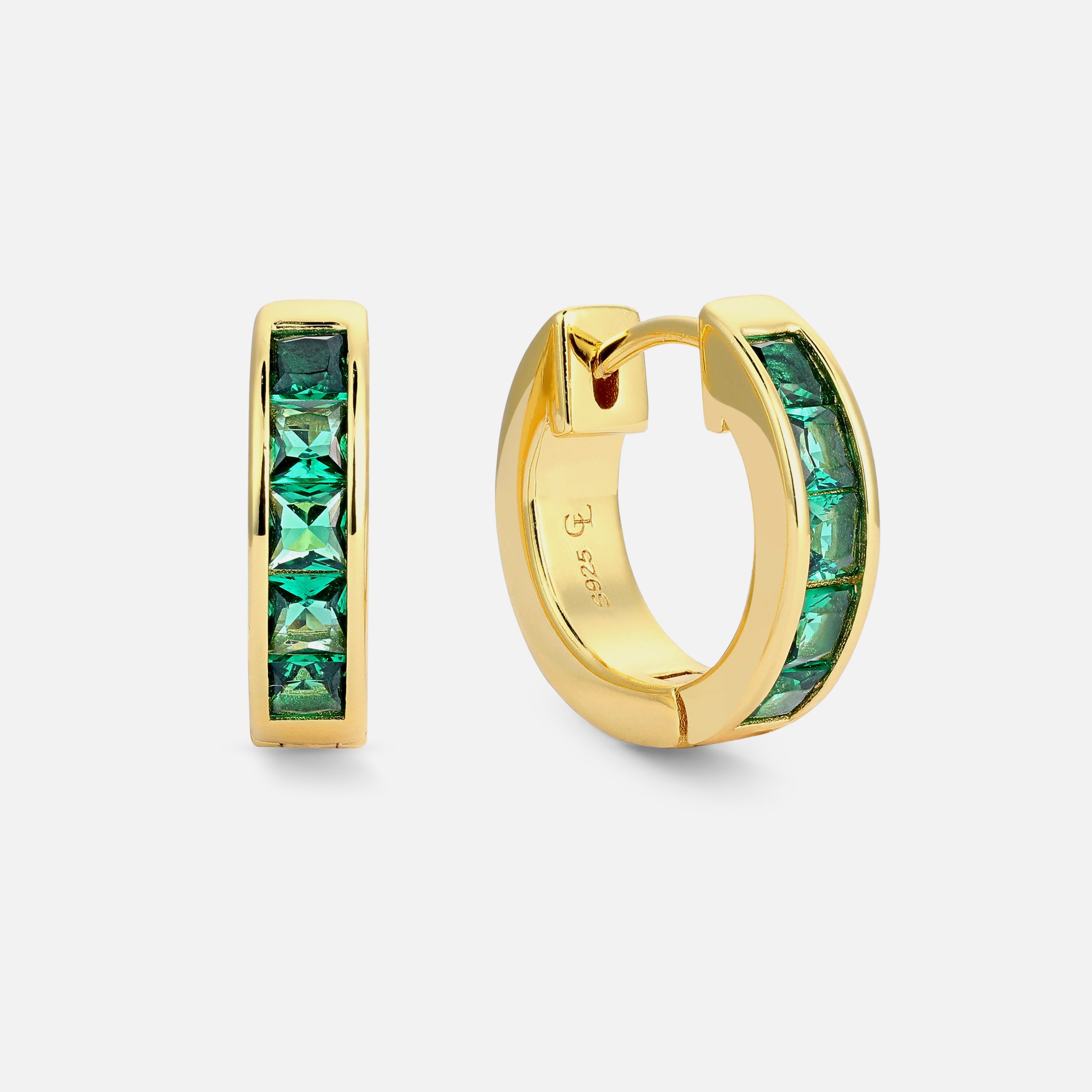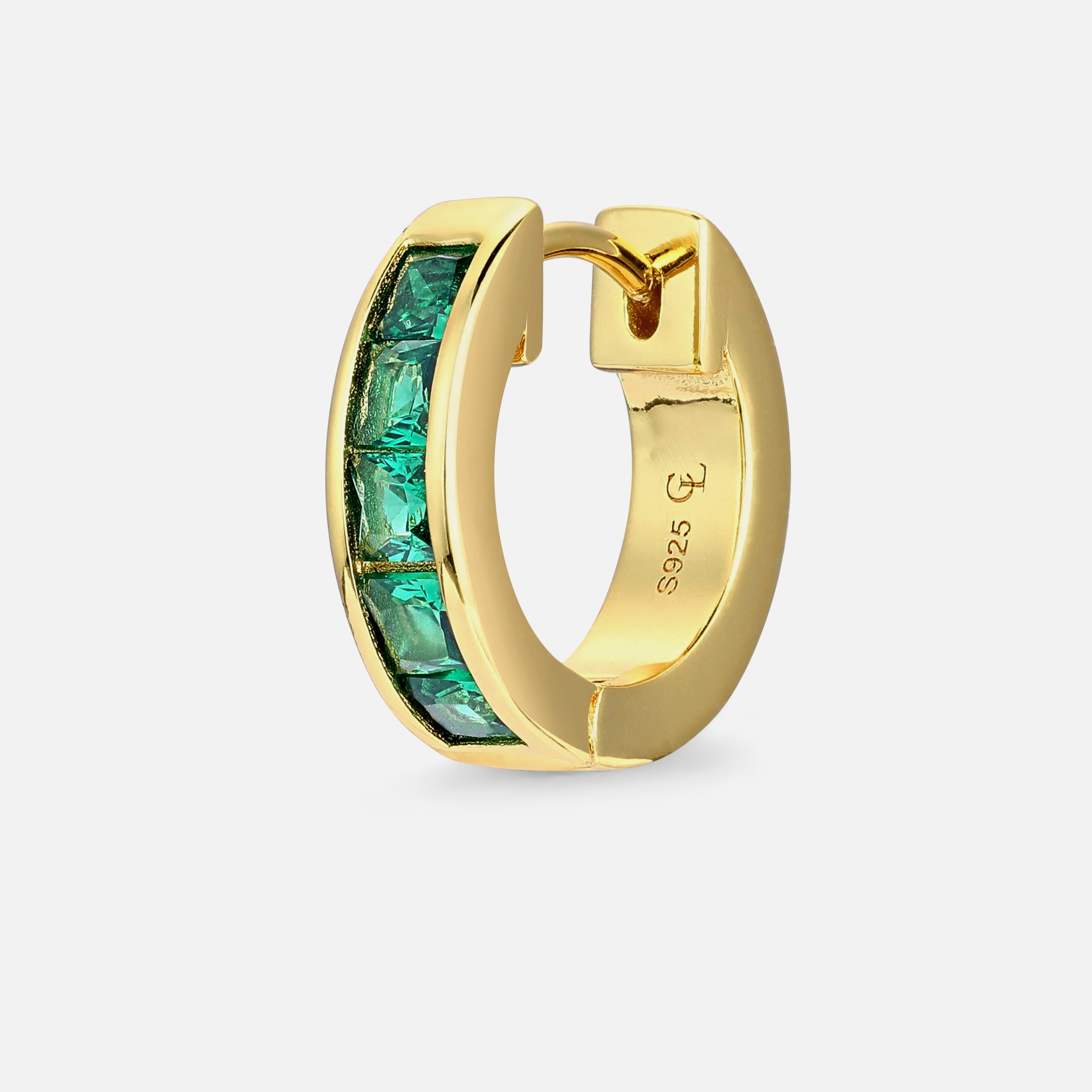 Emerald Baguette Hoop - Gold