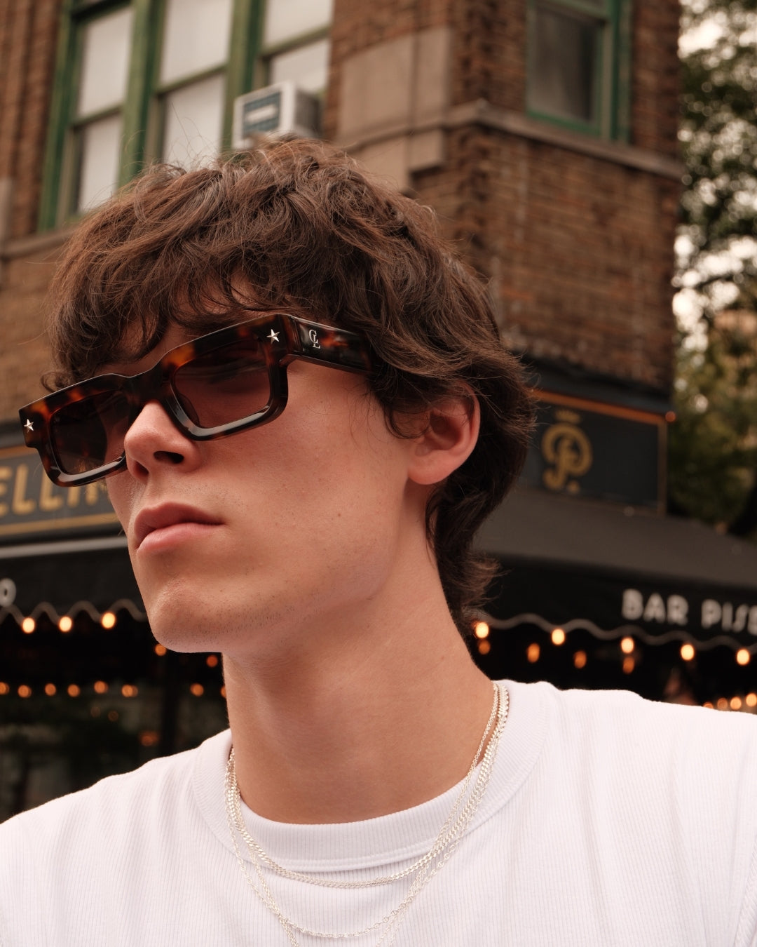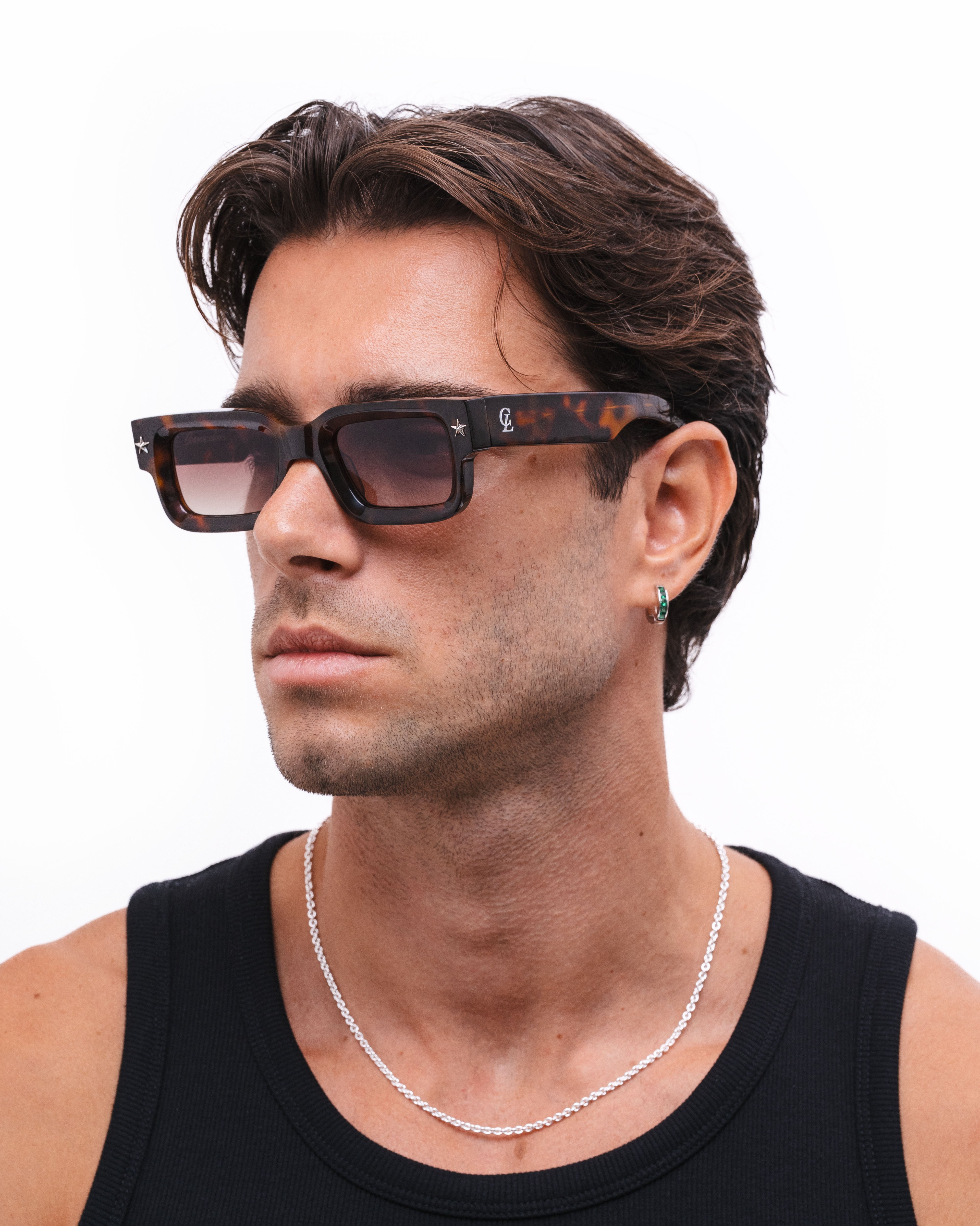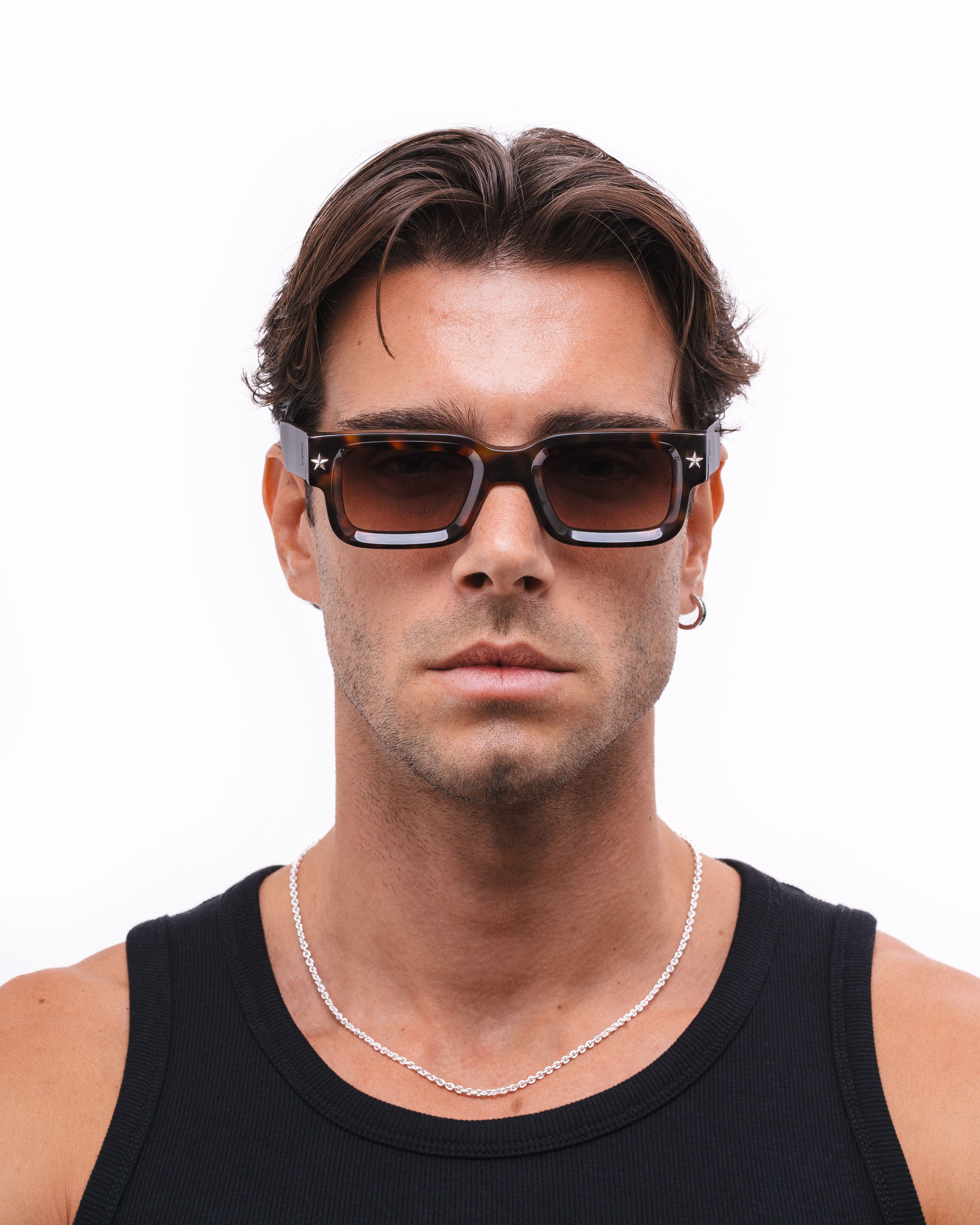 Bold, squared, and cut from premium Italian cellulose acetate, Starlight stands out in rich tortoiseshell tones paired with deep, dark lenses. Silver star accents at the front nod to the details that define Common Lines, subtle but designed to be noticed.