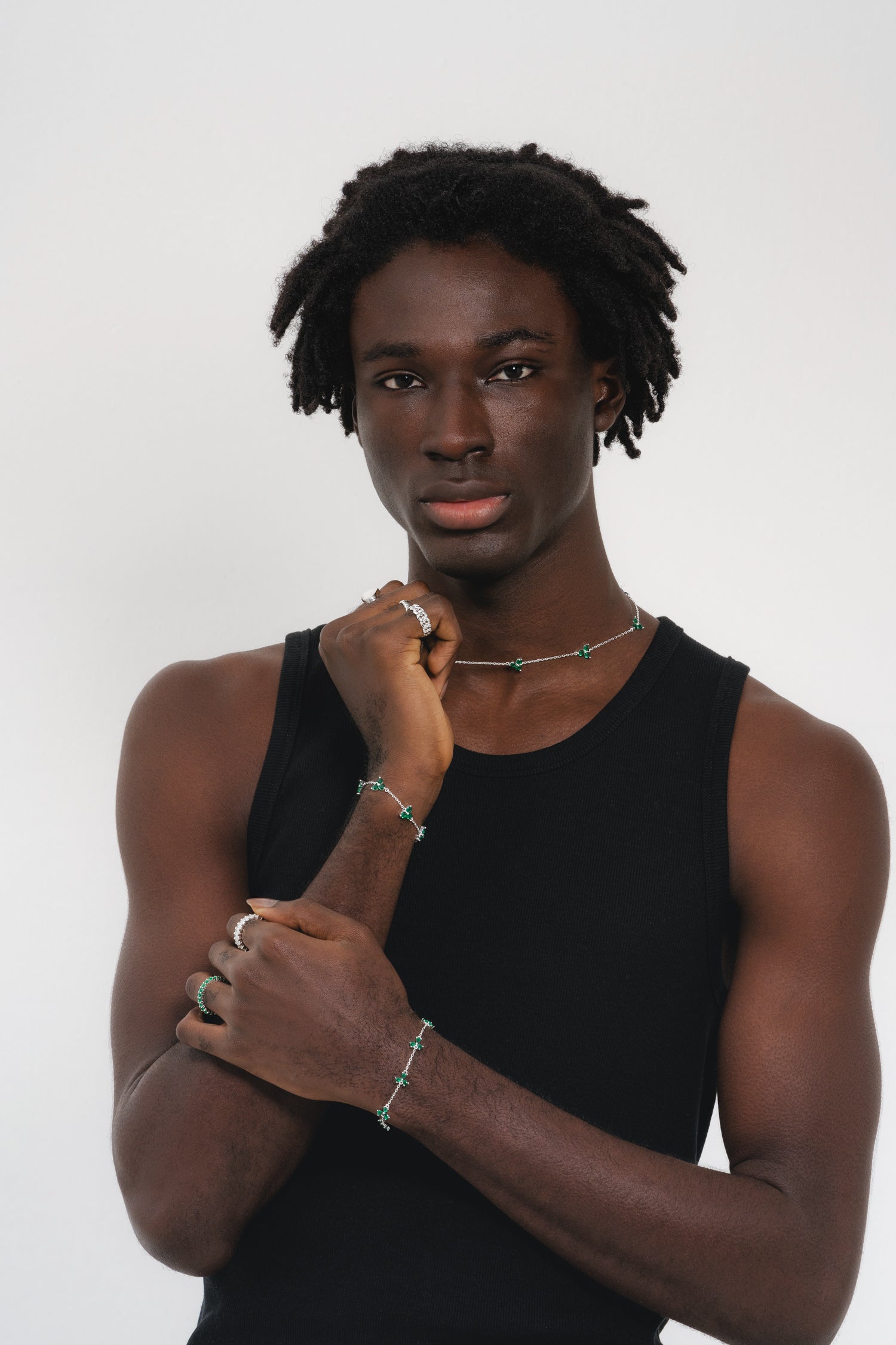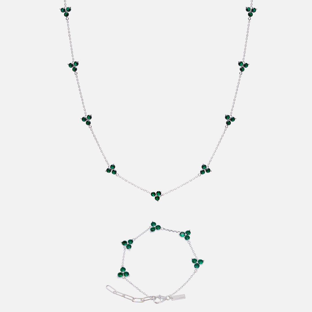 Material - .925 Sterling Silver & Round cut 5A Emerald Cubic Zirconia